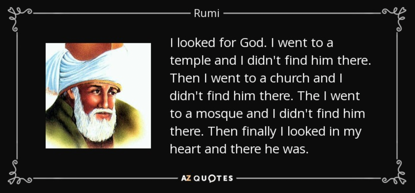 It seems to me that most religious people only seek God in a few places: in their households, in the book of their religion, in the church, the temple, or the sky. They refuse to even consider the idea that other spiritual traditions might also provide a valid perspective on the experience of God. Because, for many, what’s more important than actually communing with the Divine is being right.